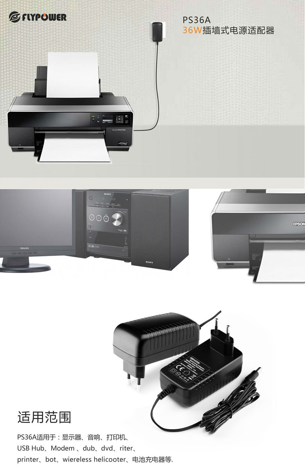安防設(shè)備、路由器、DVB、電子詞典、打印機(jī)、監(jiān)控器、DVD、ROBET Wireless leilcopter、醫(yī)療儀,游戲機(jī)、數(shù)碼機(jī)、投影儀、錄像機(jī)、凈水器、空氣凈化器、按摩枕、3D打印機(jī) 美容儀充電器等IT設(shè)備。