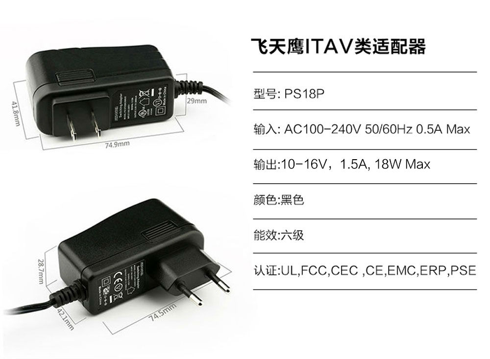 PS18P 電源適配器具有美規(guī)、歐規(guī)兩種規(guī)格
