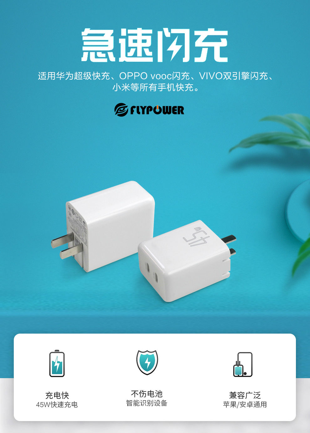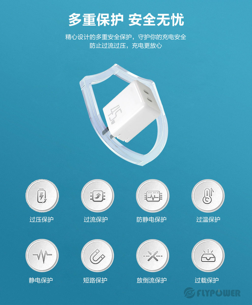 飛天鷹45W氮化鎵充電器支持蘋果、華為、小米、三星、OPPO、VIVO等各品牌手機和平板