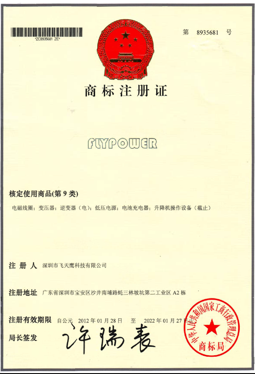 FLYPOWER商標(biāo)證書(shū)