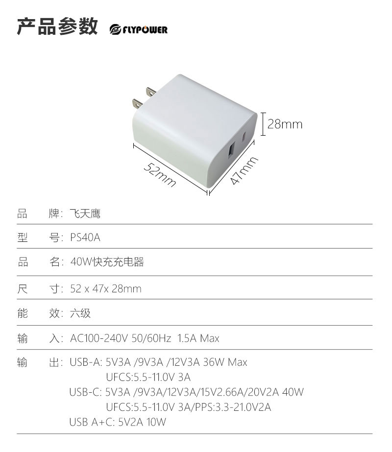 飛天鷹40W快充充電器支持蘋果、華為、小米、三星、OPPO、VIVO等各品牌手機(jī)和平板
